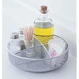 This handy mesh condiment holder is divided into two small and two large compartments to hold all of the condiments you'll need at the table.And, it spins on a lazy susan so that you can help yourself to whatever you need.The benefits of mesh metal design include easy clean-up and modern kitchen style.Get those kitchen countertops organized instantly with this small mesh lazy susan! .